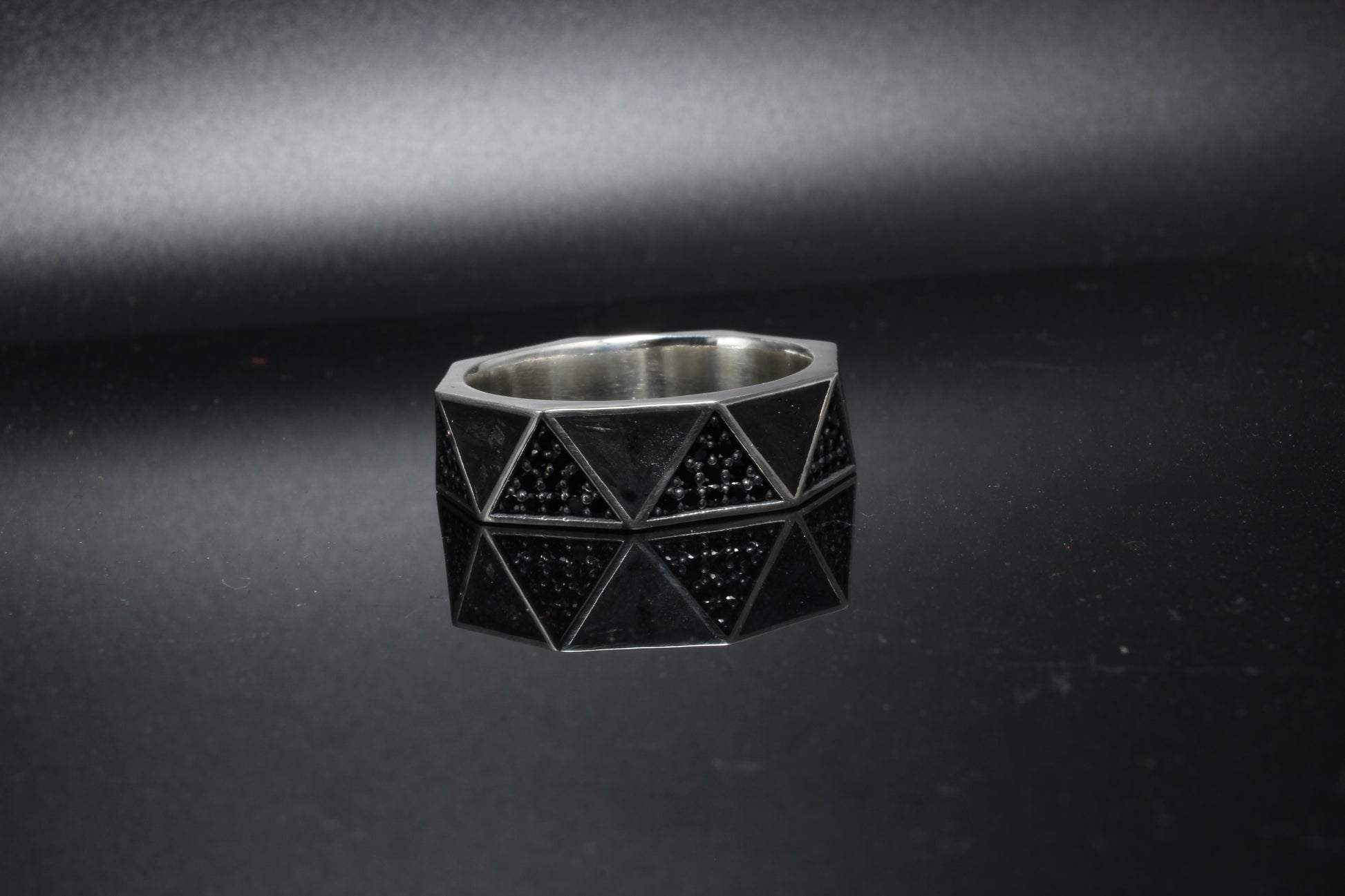 Black Carbon is no exception, made from a choice of Platinum, 18ct yellow, white or rose gold and black rhodium plated. Set with a full house of black diamonds and forged carbon giving you a totally unique look.